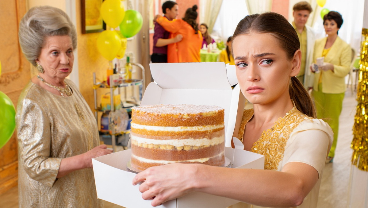 Лена спокойно прошла к сервировочному столику. Взяла огромную коробку с тортом. Подняла её — тяжело, руки сразу заныли, но она держала крепко.