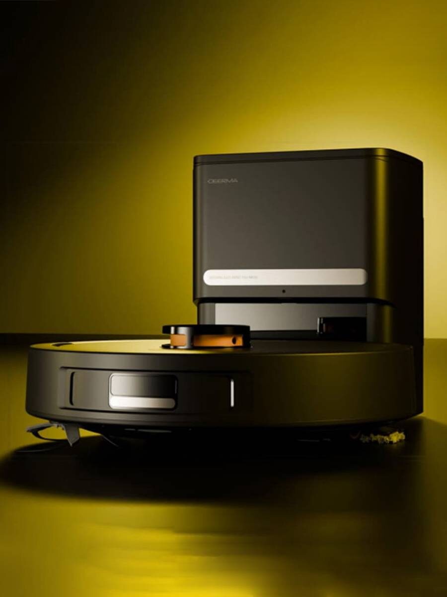 Небольшой чёрный робот высотой 9.7 см. Главное оружие — лидар в подпружиненном корпусе для защиты от застреваний и станция самоочистки, которая, в отличие от некоторых конкурентов, не занимает пол-комнаты. В комплекте — робот, станция, модуль для влажной уборки и стандартные аксессуары. Производитель обещает нам по-настоящему автономную работу.