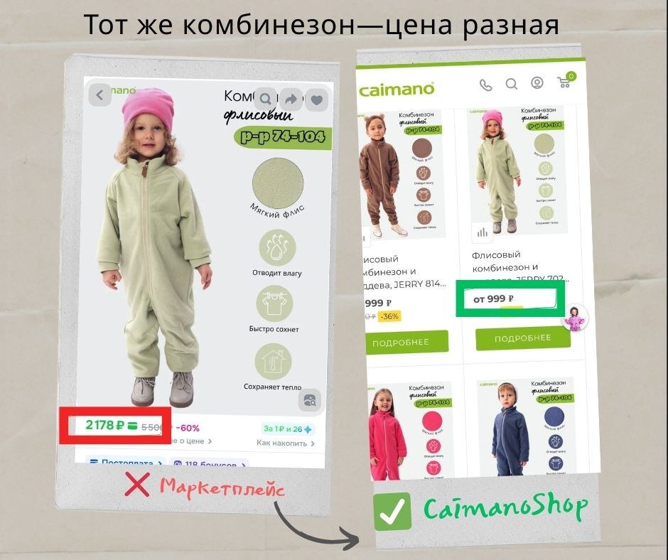 ? Мы решили проверить и сравнить 👀 Взяли одни и те же модели наших брендов CAIMANO и Mini Hippy и посмотрели цены: 📌 на маркетплейсе 📌 на нашем официальном сайте производителя Что получилось 👇 👉 Маркетплейсы подняли комиссии 👉 Эти комиссии автоматически закладываются в цену 👉 В итоге — тот же самый товар, но заметно дороже 📉 Самые выгодные цены сейчас — напрямую у производителя Без лишних наценок, без «платы за площадку». 📸 Для наглядности прикладываем скрины: сайт производителя vs маркетплейс. Разница — на экране. 💡 Мы ни на что не намекаем, просто делимся фактом 😉 Если хочется сэкономить и купить напрямую, официальный сайт CaimanoShop.com всегда открыт. А вы сравниваете цены перед покупкой? Пишите в комментарии 😉