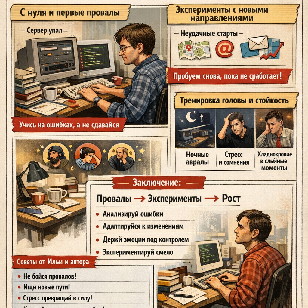 Вы когда-нибудь видели человека, который сидит за старым компьютером, пишет код и думает, что изменит жизнь миллионов людей? Нет? Тогда вы не видели Илью Сегаловича. Парня, который начинал с нуля, терпел провалы, почти не верил в успех, но продолжал учиться на собственных ошибках. А сегодня? Его вклад в Яндекс — это цифровой мир, который мы воспринимаем как должное. Но путь к этому… ребята, держитесь, будет жарко. Москва, начало 90-х. Маленькая комната, старый ПК, книги по программированию, которые давно пора выбросить, и Илья. Родители ворчат:
