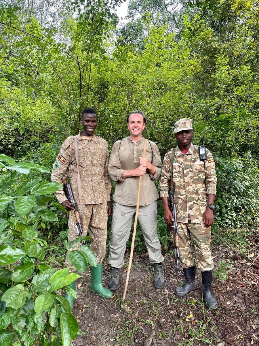 Маршрут начинается с инструктажа и получения походного посоха на краю ущелья. Группу сопровождают вооруженные рейнджеры и следопыты, которые знают повадки приматов. Путь лежит по крутым склонам вниз, на дно каньона. Из жаркой саванны мы попали в прохладный, влажный лес, полный птичьих трелей и шелеста листвы. Следопыты по разным приметам (следам и звукам) отслеживают присутствие шимпанзе, которые довольно быстро перемещаются. Если удача сопутствует, вы выйдите к ним быстро и засвидетельствуете их в процессе отдыха, за играми, кормлением, уходом за шерстью друг друга. Важно знать, что прогулка требует достаточной физической активности, включая спуски, подъёмы и ходьбу по неровной, иногда скользкой местности. Требуется хорошая треккинговая обувь и базовый уровень физической подготовки. Также для треккинга необходимо разрешение (пермит). Количество строго лимитировано 8 утренними и 8 дневными пермитами (всего 16 в день). Стоимость для иностранных туристов — $50. Бронировать нужно силь