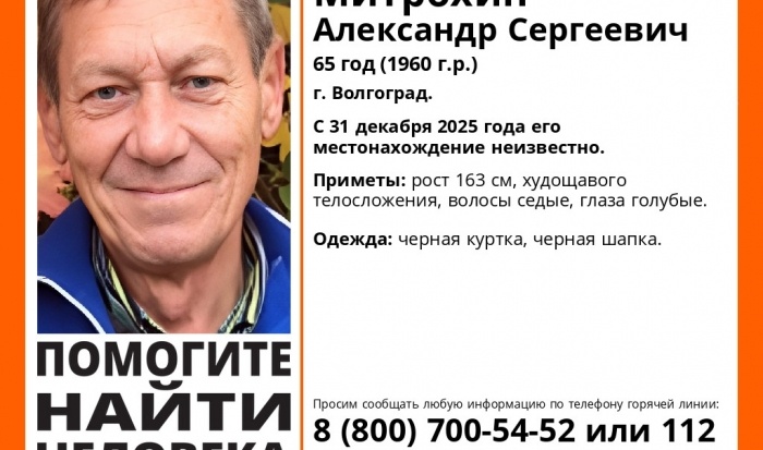 Местонахождение Александра Митрохина неизвестно с 31 декабря 2025 года. Как сообщает ПСО «ЛизаАлерт», ведутся поиски 65-летнего Александра Митрохина. Местонахождение мужчины неизвестно с 31 декабря 2025 года. Приметы пропавшего: рост 163 см, худощавое телосложение, седые волосы, голубые глаза. В день исчезновения мужчина был одет в черную куртку и черную шапку. Всех, кто располагает информацией о местонахождении Александра Митрохина, просят звонить по телефону 8 800 700 54 52 или 112.
