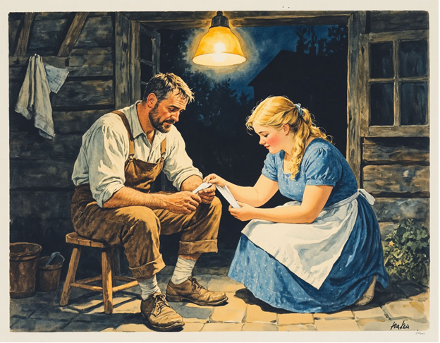 Вернувшись из клуба, Петр и Мария долго стояли в сенях. Тишина их дома звенела, как натянутая струна. Затем Петр молча скинул куртку, и только теперь, при свете лампочки, Мария разглядела на его костяшках сбитую кожу и тёмную полоску запекшейся крови. Сердце у нее ёкнуло от боли, и на смену умиротворению пришла четкая, привычная потребность действовать.