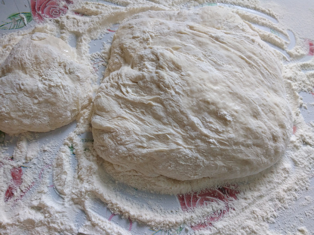 Выложила тесто на стол. Хорошо подошло. Можно приступать.