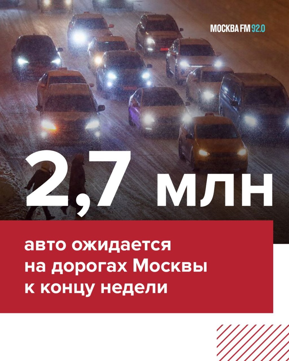 По прогнозам аналитиков ЦОДД, приток машин на первой рабочей неделе не будет резким. Это связано с тем, что уехавшие за город водители возвращаются в Москву уже с 3 января. ⚠️ При этом завтра автомобилистам рекомендуют пересесть на метро. А водителям грузовиков — обязательно иметь при себе цепи противоскольжения, лопату и буксировочный трос, а также не перегружать машину и тщательно планировать маршрут. 📌 Подписаться на Москва FM / Наш чат-бот / Мы в MAX