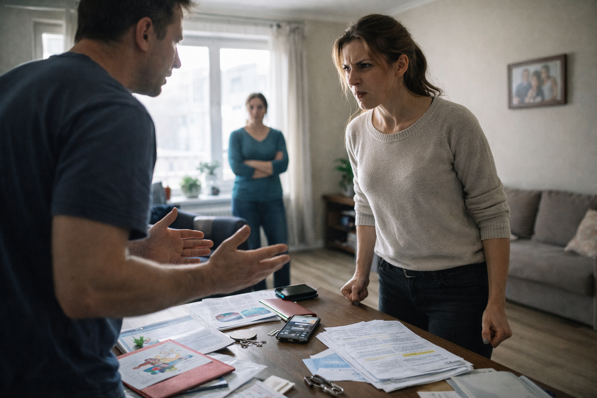 Вечером того же дня Алексей вернулся домой явно не в настроении. Хмурый, молчаливый, с глубокими складками между бровей и напряжённой челюстью, он прошёл на кухню, бросил ключи от машины на стол с глухим металлическим стуком и достал из потрёпанной кожаной сумки толстую папку с бумагами. Вика подняла глаза от ноутбука, где она разбирала накопившиеся за день рабочие письма и пыталась не думать о завтрашнем совещании с руководством.
