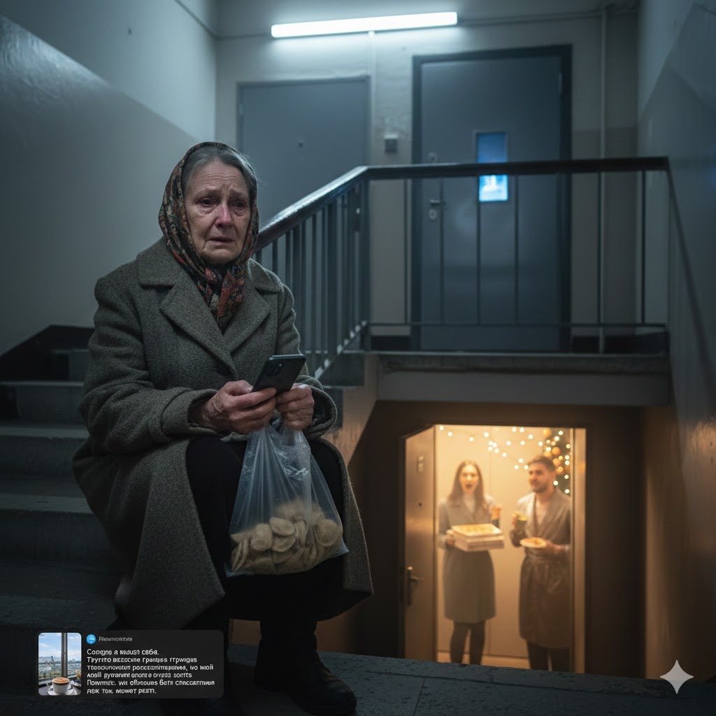 Внезапно дверь лифта со скрежетом открылась. На площадку вышла молодая девушка в ярком пуховике, нагруженная коробками с пиццей. Она замерла, увидев пожилую женщину, сидящую на ступенях в полумраке.