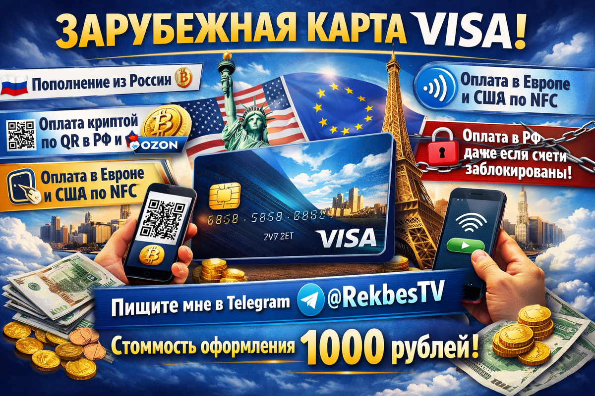 В современном мире, когда международные платежи становятся все более сложными из-за санкций и ограничений, многие россияне ищут надежные способы получить зарубежную банковскую карту. Если вы хотите оформить карту Visa, которая позволит свободно пополнять счет из России, оплачивать покупки по QR-коду криптовалютой в России и на маркетплейсах вроде Ozon, а также использовать NFC для платежей в Европе и США, то эта статья для вас. Мы разберем, как это сделать всего за 1000 рублей, и почему такая карта станет вашим спасением, даже если ваши российские счета заблокированы. Санкции и блокировки банковских счетов в России создают множество проблем для повседневных операций. Обычные карты от российских банков часто не работают за границей, а пополнение иностранных счетов становится настоящим вызовом. Зарубежная карта Visa, оформленная через надежный сервис, решает эти проблемы одним махом. Она позволяет: Стоимость оформления такой карты — всего 1000 рублей, что делает ее доступной для всех. Э