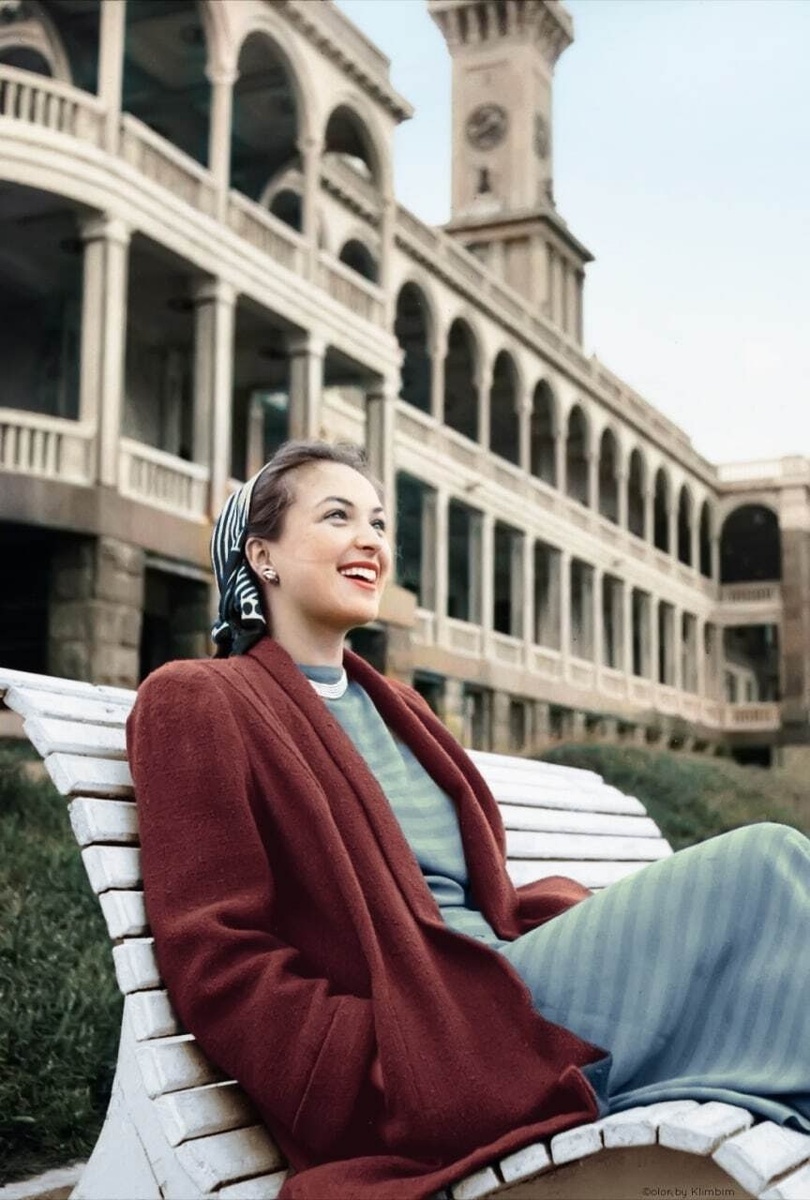 ИИ раскрасил Клару Лучко, которая сидит на скамейке около нашего Северного речного)