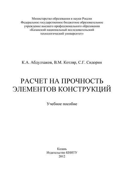 Г. Сидорин, К. А. Абдулхаков, В. М. Котляр Изложены теоретические основы расчетов на прочность при осевом растяжении и сжатии, плоском изгибе, изгибе с кручением, а также основы расчета на прочность тонкостенных сосудов. Предназначено для самостоятельной работы студентов всех форм обучения, изучающих дисциплины «Прикладная механика» и «Сопротивление... Подробнее смотрите здесь: https://izbe.ru/book/raschet-na-prochnost-elementov-konstrukciy-k-abdulhakov-v-kotlyar-s-sidorin-2807779/