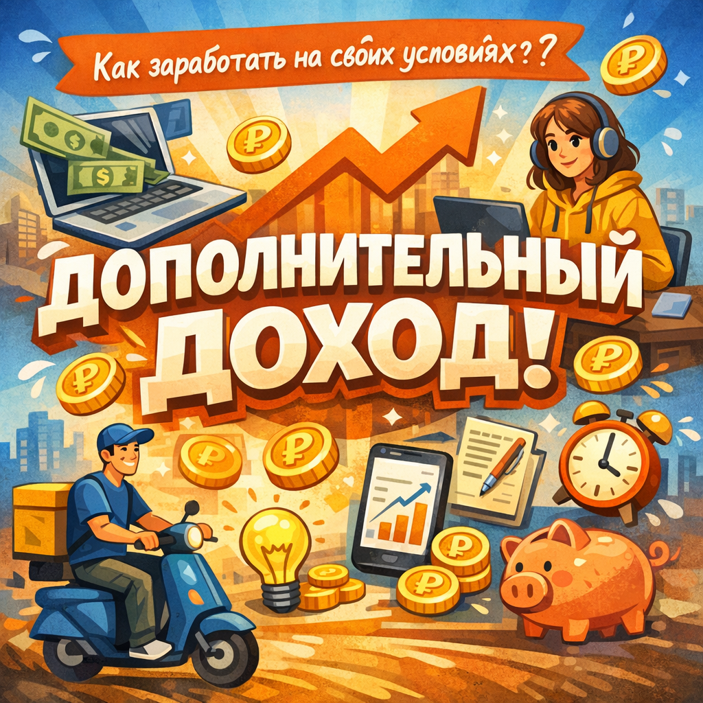 Дополнительный доход — это не про «пахать по ночам» и не про сомнительные схемы. Это про разумные источники денег, которые можно встроить в обычную жизнь: пара часов в неделю, навыки, которые уже есть, и понятный результат. Мы уже писали здесь 👉 https://dzen.ru/a/aWKNRMNiO0We-vKd о том как получить дополнительный доход от Государства. В этой статье — практичный разбор, какие варианты дополнительного дохода действительно работают в 2026 году, как выбрать подходящий именно вам и не слить время впустую. За последние годы стало очевидно: один источник дохода — высокий риск. Цены растут быстрее зарплат, а стабильность в найме больше не гарантирована. Дополнительный доход сегодня — это: И хорошая новость в том, что начинать можно без стартового капитала. Большинство ищет «волшебную кнопку»: вложил 10 тысяч — через месяц получил 100. На практике так не работает. Реальный дополнительный доход строится на одном из трёх ресурсов: Чем раньше вы это примете, тем быстрее появятся первые деньги.