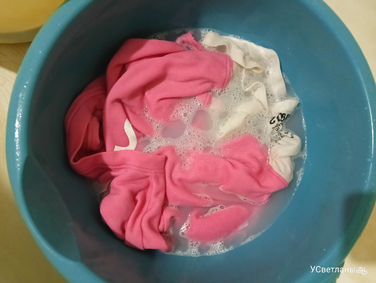 Когда вещей сильно много, я стираю в машинке, как сегодня. А так как сегодня у меня тёмные вещи, то свою кофту я стираю в тазу отдельно от всех.