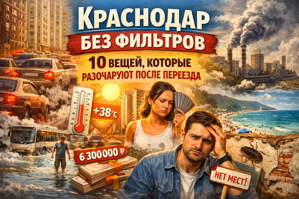 Ты выходишь из такси у новенькой многоэтажки. Воздух густой, горячий — будто дышишь через полотенце. На улице — пальмы, солнце и сотня машин, гудящих в унисон. Вот он, тот самый южный рай, о котором ты мечтал, — только рай этот наполнен пробками, пеклом и соседями, которые обсуждают жизнь громко и на все дворы. Я — Сергей, агент по недвижимости, живу и работаю в Краснодаре. И я искренне люблю этот город. Но честно скажу: сюда многие приезжают с розовыми очками — и быстро сталкиваются с суровой реальностью.