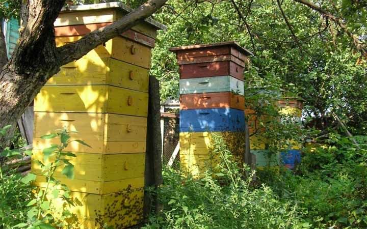 Расплодное гнездо организовывается вверху, на шестом этаже. Открыт круглый леток на шестом этаже, открыт круглый леток на пятом этаже, все нижние летки закрыты. Пространство с пятого по первый этаж включительно заполнены сушью и на 30% вощиной.