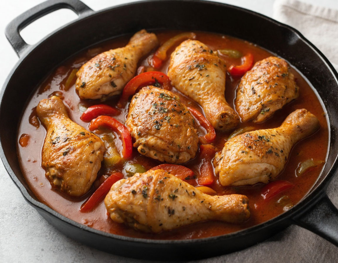 «Цыпленок по-римски» (Pollo alla Romana) — это нестареющая классика итальянской кухни, воспевающая вкус сочных томатов, сладкого болгарского перца и нежного куриного мяса. В Италии это блюдо традиционно готовят на праздник Феррагосто, но оно идеально подходит для уютного семейного ужина в любое время года. Секрет этого рецепта — в длительном томлении, благодаря которому мясо буквально сползает с косточки, пропитываясь ароматами овощей и белого вина. Для этого блюда лучше брать части цыпленка на кости (ножки, бедра) — так соус получится более насыщенным. Время приготовления: 1 час Шаг 1: Обжарка цыпленка Кусочки цыпленка обсушите бумажным полотенцем, посолите и поперчите. В глубокой сковороде разогрейте оливковое масло и обжарьте курицу на сильном огне до золотистой корочки с обеих сторон. Выньте мясо на тарелку. Шаг 2: Подготовка овощей В той же сковороде обжарьте мелко нарезанный лук и раздавленные зубчики чеснока до мягкости. Болгарский перец нарежьте длинными полосками, добавьте к л