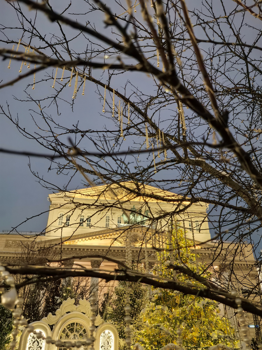 Фотозон около Большого театра, конечно, достаточно, но терять время на ожидание, когда рассосётся очередь из желающих запечатлеть себя, любимого, а заодно и всех родных и друзей в новогоднем антураже, совсем не хотелось, а фотографировать толпу я не люблю, поэтому много чего осталось за кадром.