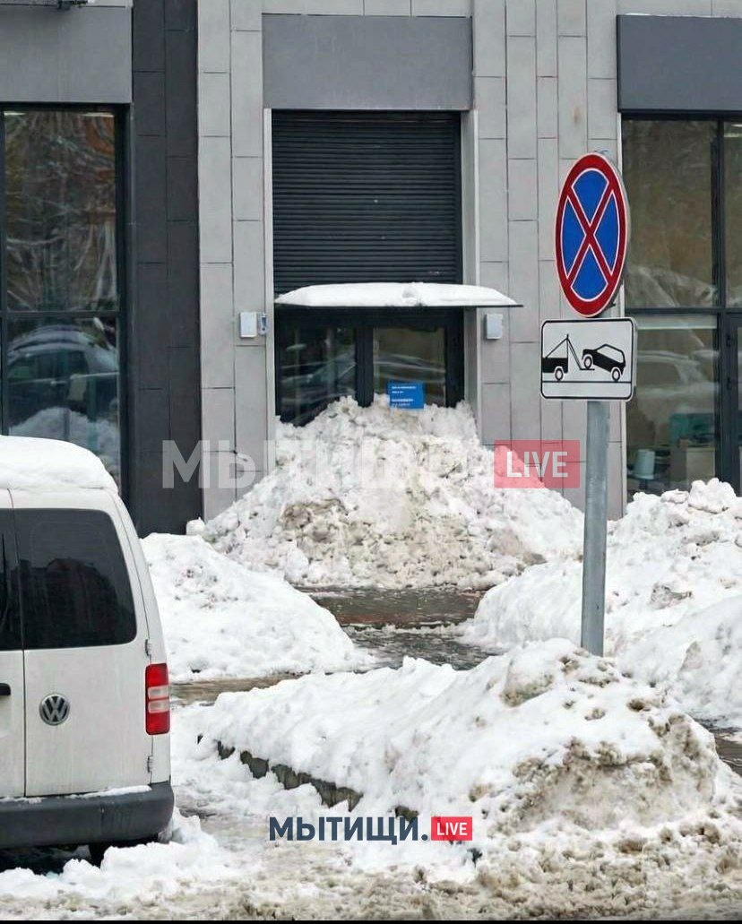 ❄️ В ЖК «Мытищи Парк» жильцы завалили снегом вход в офис УК.