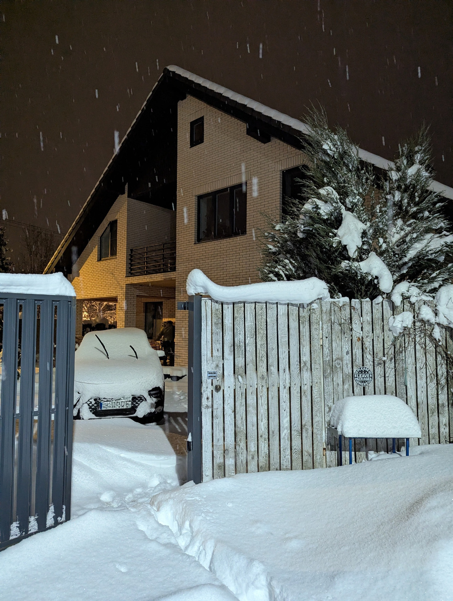 Приехали ночью из отпуска, а тут пол метра снега. Спасибо, ворота приоткрылись, да кошки тропу набили 😂