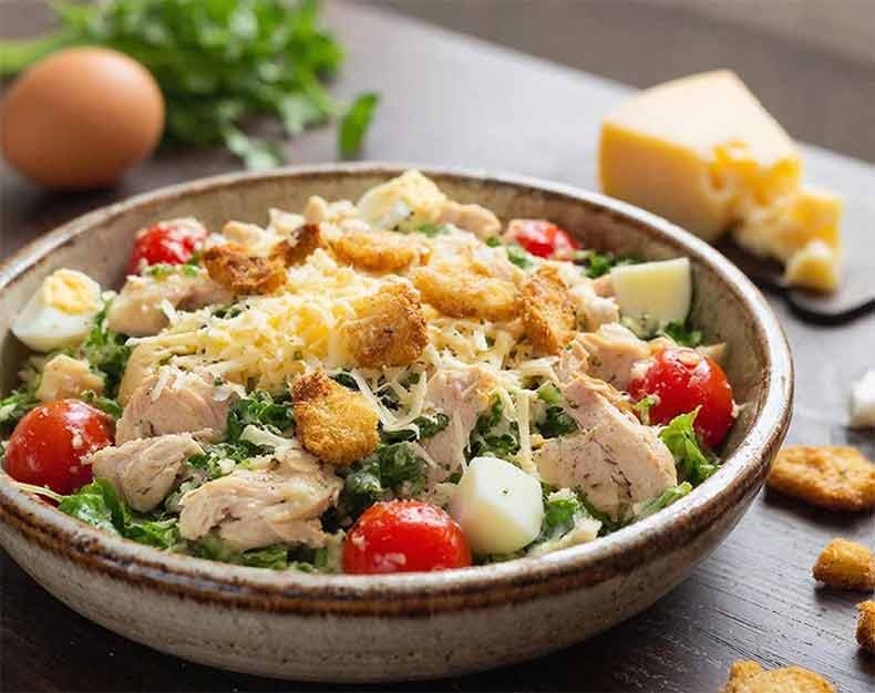 Приветствую вас на канале «Просто повар»! Бывает, что гости уже на пороге, а ужин только в мыслях. Или просто нет сил после работы стоять у плиты. Именно для таких моментов у меня в запасе есть рецепт-выручалочка. Этот салат готовится быстрее, чем доставляется пицца, но при этом он невероятно сытный, с хрустом, ярким вкусом и бюджетной стоимостью. Забудьте про сложные ингредиенты. Здесь всё гениально и просто. • Скорость. 15 минут от идеи до тарелки. • Сытность. Курица и яйца - это белок, который насыщает надолго. • Хруст. Секрет в домашних сухариках, которые не размокают сразу. • Универсальность. Идеален как самостоятельное блюдо на ужин или как дополнение к супу. Нам понадобится (на 2-3 порции): • Куриное филе: 1 шт. (около 250 г). Можно взять готовую копченую куриную грудку для еще более быстрого варианта. • Яйца: 3 шт. • Помидоры черри: 150 г (или 1 крупный помидор). • Сыр твердый: 100 г (подойдет российский, гауда, чеддер). • Хлеб: 2-3 ломтика (багет, бородинский, белый). Или гот
