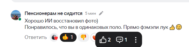 Для Светланы, Андрея и моих подписчиков, посетителей объясню, что не всё так просто и, прежде чем воспользоваться услугами бесплатного ИИ, приходится потрудиться мозгами и руками. ИИ очень помогает и облегчает процесс восстановления древних ч/б негативов и слайдов, но он далеко невсемогущь и часто, густо косячит. Есть средства иного рода, тот же Фотошоп и без него никак. Большая часть подготовительных работ сделана с его помощью.