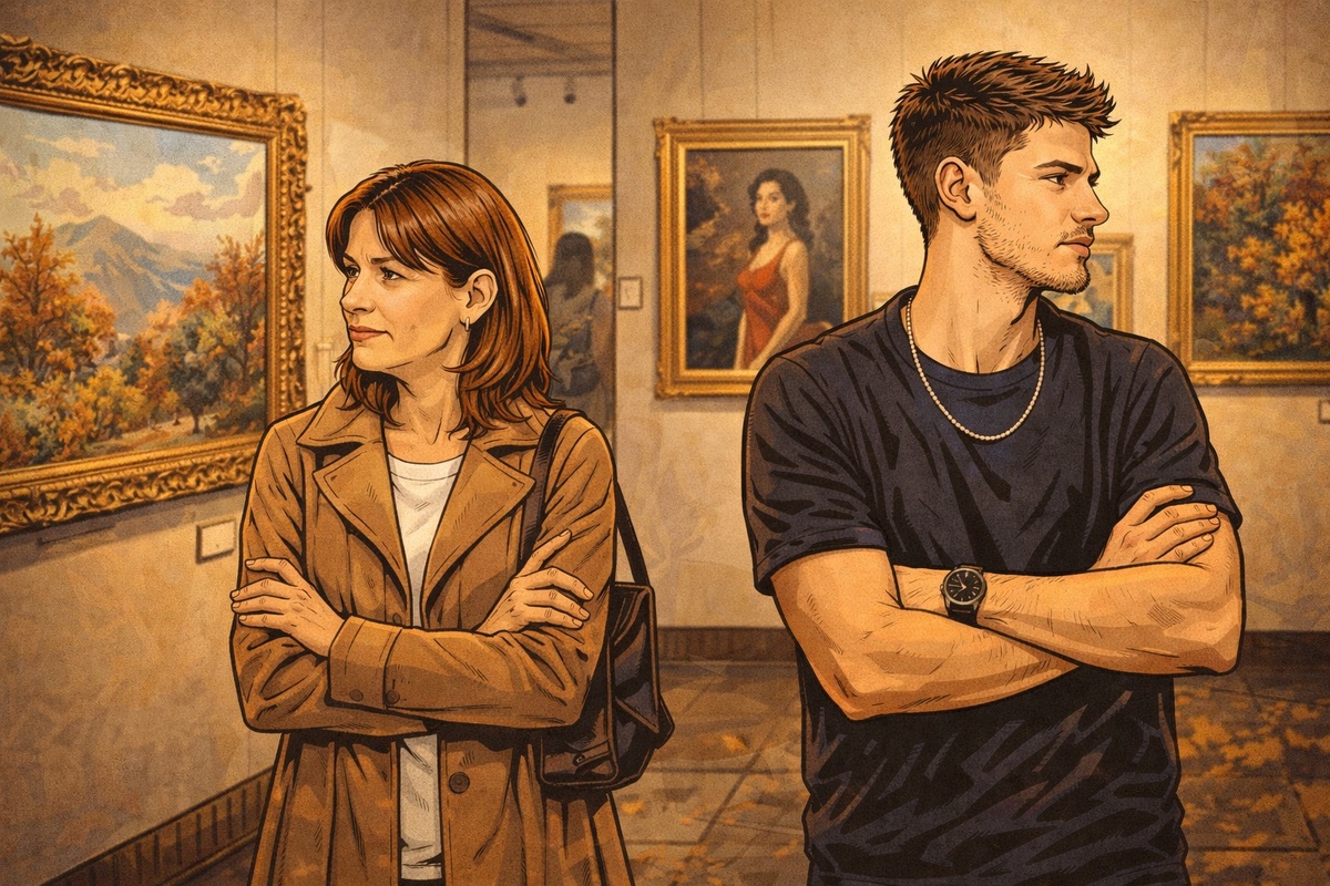 Все главы Максим ждал у входа в небольшую галерею, где по вечерам собирались любители искусства. Внутри пахло маслом, краской и древесиной, а мягкий свет подчёркивал текстуры картин и скульптур. Он заметил Елену сразу, когда она появилась в дверях, слегка опираясь на палку её пальто, с шарфом, обвивающим шею. — Привет, — сказал он, и его голос дрожал чуть меньше, чем обычно. Он хотел подойти, обнять, но вместо этого просто сделал шаг навстречу. — Привет, — ответила она, улыбаясь. — Не думала, что ты сюда придёшь. — Я… думал, что это будет интереснее, чем снова сидеть в кафе, — признался он, нервно засовывая руки в карманы. Они прошли внутрь, и пространство галереи мгновенно стало их собственным. Свет падал мягко, создавая тёплые блики на лицах, и Максим ощущал, как его стеснение постепенно уступает место вниманию. Он заметил, как Елена внимательно рассматривает картину — её пальцы едва касаются рамки, глаза блестят. — Эта картина… — сказал он тихо, наклонившись к ней, — напоминает мне