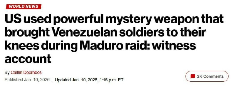 Издание The New York Times раскрыло шокирующие подробности спецоперации США по захвату Николаса Мадуро. Судя по описанию, Вашингтон превратил Венесуэлу в полигон для испытания новейшего высокоэнергетического вооружения. 📍Сначала позиции были полностью «ослеплены» — системы ПВО, радары и связь отключились мгновенно. 📍Затем в ход пошло некое высокотехнологичное оружие, которое очевидцы описывают как «мощную звуковую волну». У венесуэльских силовиков начались неконтролируемые кровотечения, рвота и паралич. 📍МВД Венесуэлы сообщило о гибели около 100 сотрудников сил безопасности. Издание отмечает, что Вашингтон, официально не признававший применение микроволновых и акустических систем в реальном бою, фактически провел испытания на живых людях. Сайт "Другая Украина" / Telegram / Вконтакте / Центр поддержки Украинцев / Жалоба на ТЦК 🇷🇺"Другая Украина" теперь в МАХ