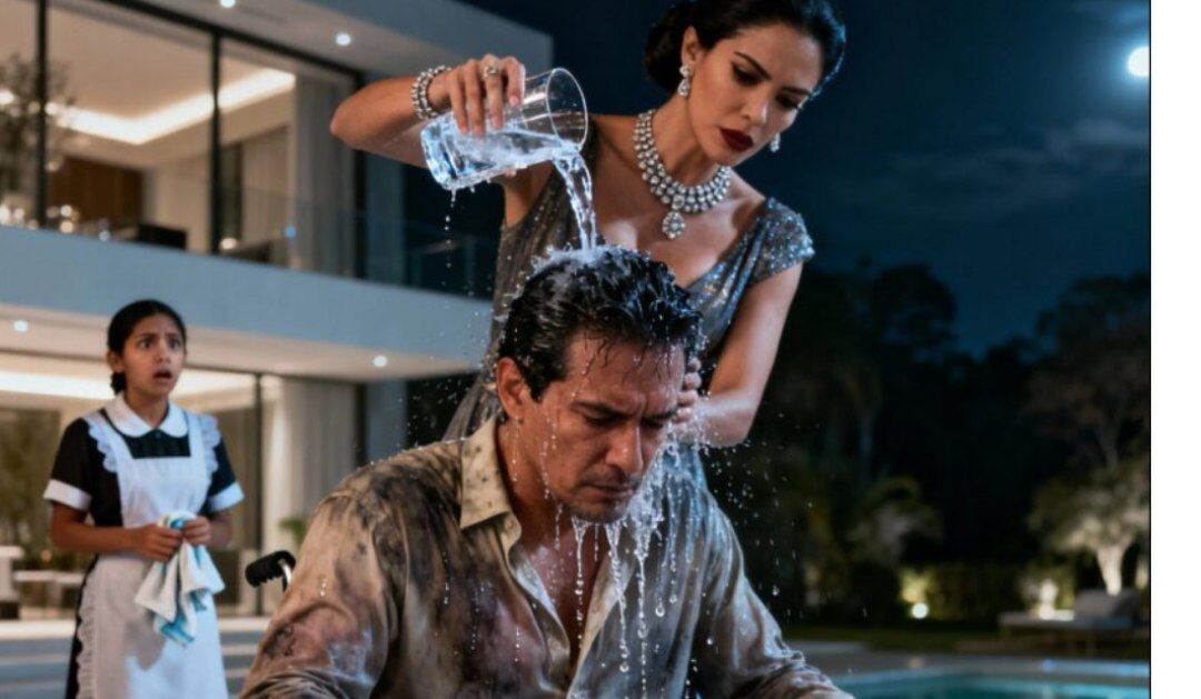 Вместо того чтобы найти утешение, ребёнок остановился на месте — в шоке. Отец замер, а жена, будто ничего не замечая, продолжала с диким, натянутым смехом поливать холодной водой старика.