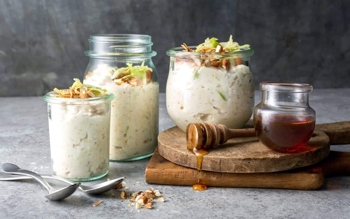 Мюсли - это не просто овсяная каша с добавками. Это удобный и питательный завтрак, который можно: · съесть сразу после приготовления; · оставить в холодильнике на ночь - тогда овсяные хлопья размягчатся, приобретут кремовую текстуру и станут ещё вкуснее. Сочетание кокоса и зелёного яблока придаёт блюду свежий, слегка сладковатый вкус. Основа: · натуральный греческий йогурт (0 % жирности) - 1½ стакана (368 г); · несладкое кокосовое молоко - ½ стакана (122 г / 120 мл); · свежевыжатый апельсиновый сок - ¼ стакана (62 г); · светлый мёд или кленовый сироп - 2 ст. л.; · молотая корица - ¼ ч. л.; · кошерная соль - ⅛ ч. л. Начинка: · овсяные хлопья - 1 стакан (80 г); · жареный несолёный миндаль (нарезанный) - ½ стакана (46 г); · жареные несолёные тыквенные семечки - ½ стакана (59 г); · тёртый несладкий кокос - ½ стакана (21 г); · яблоко сорта «Гренни Смит» (очищенное и натёртое) - 1 шт. Для украшения (по желанию): · молотая корица; · мёд или кленовый сироп; · поджаренная кокосовая стружка; ·