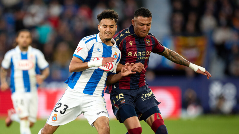 «Леванте» сыграл вничью с «Эспаньолом» в домашнем матче 19‑го тура чемпионата Испании по футболу. Встреча в Валенсии завершилась со счетом 1:1. В составе «Леванте» отличился Икер Лосада, за «Эспаньол» гол забил Карлос Ромеро. «Леванте» (14 очков) занимает 19‑е место в турнирной таблице Ла Лиги, «Эспаньол» (34) идет пятым. В другом матче дня «Райо Вальекано» дома в меньшинстве обыграл «Мальорку» со счетом 2:1. Прямые трансляции матчей чемпионата Испании смотрите на каналах группы «Матч», а также сайтах matchtv.ru и sportbox.ru. «Леванте» (Валенсия) — «Эспаньол» (Барселона) — 1:1 (0:0) Голы: Лосада, 55 (ВИДЕО). — Ромеро, 53 (ВИДЕО).