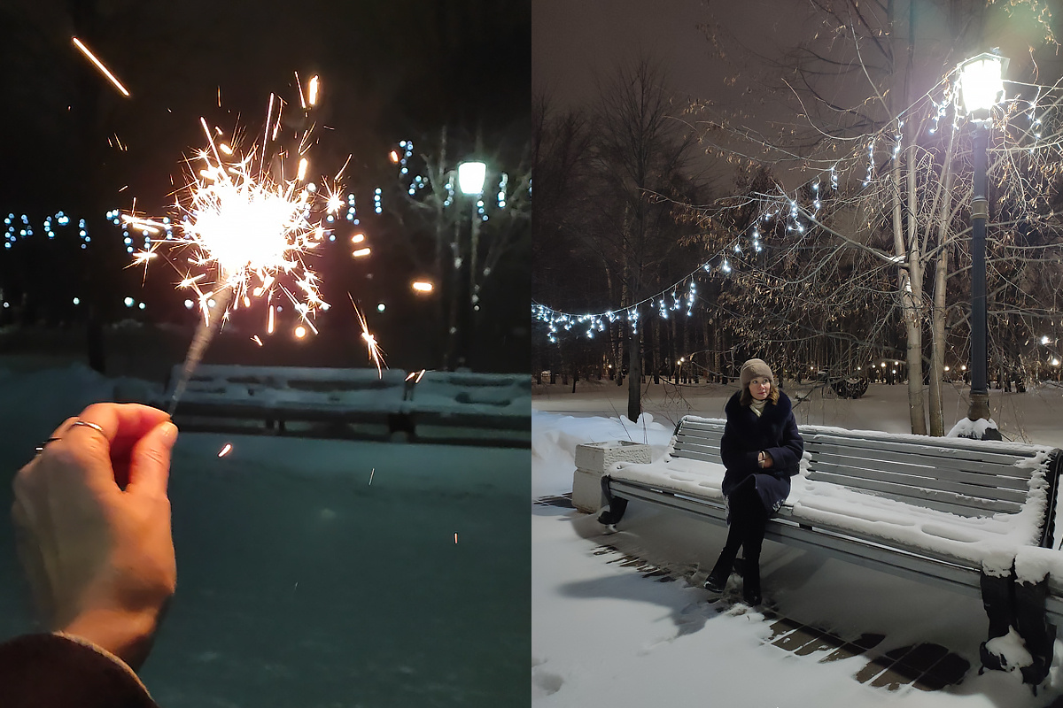 Кажется, пришло время выходить из этого праздничного забвения. Но это так сложно! Чем дольше не проявляешься в социальных сетях, в блоге, чем дольше не работаешь - тем сложнее выйти и начать снова что-то делать: писать статьи, снимать фото и вести привычную жизнь... В эти новогодние каникулы хотелось просто быть в настоящем моменте: вкусно есть, валяться на диване, смотреть сериалы, читать книги, вязать и гулять даже в мороз. Первого числа мы пошли жечь бенгальские огни в пустынном парке - жутко замерзли руки, но это стоило того. Странно было видеть парк безлюдным, но в этом есть своя прелесть) Прогулялись до площади. Вот такая пиксельная елка там стоит - очень яркая, красиво смотрится на фоне темного неба, а я хороша на ее фоне)) В этом году тут почему-то не поставили горки и народа вообще мало, в прошлом году людей было намного больше. Нагуляв аппетит и заморозив щеки мы пошли пить кофе в Ростикс - похоже все люди собрались там)) Свой заказ ждали минут 20, если не дольше - народу