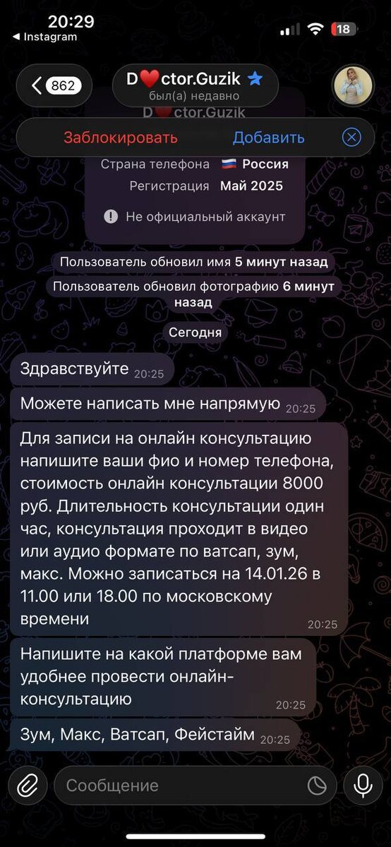 Ни в коем случае не реагируйте, все консультации у меня бесплатные. Мы связываемся ТОЛЬКО с рабочего номера телефона моей помощницы Надежды 8 (985) 398-30-68