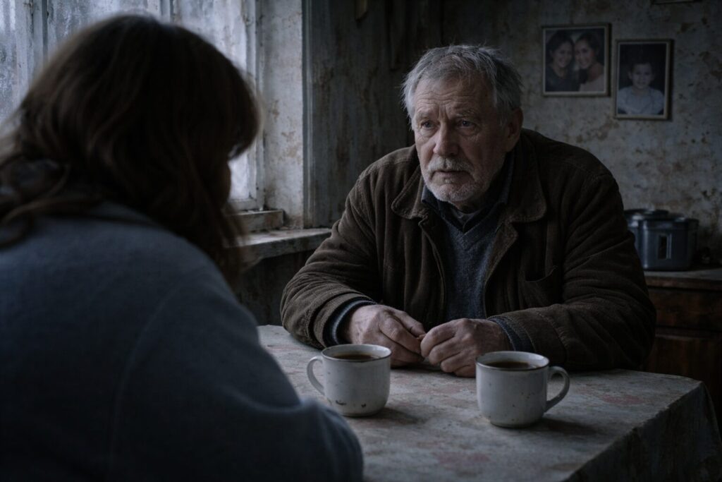 Ирина села за стол и огляделась. Старый дом, старая мебель — буфет с трещиной, клеёнка в цветочек, фотографии на стене. Молодой Михалыч с женщиной — наверное, покойной женой. Ребёнок на руках…
