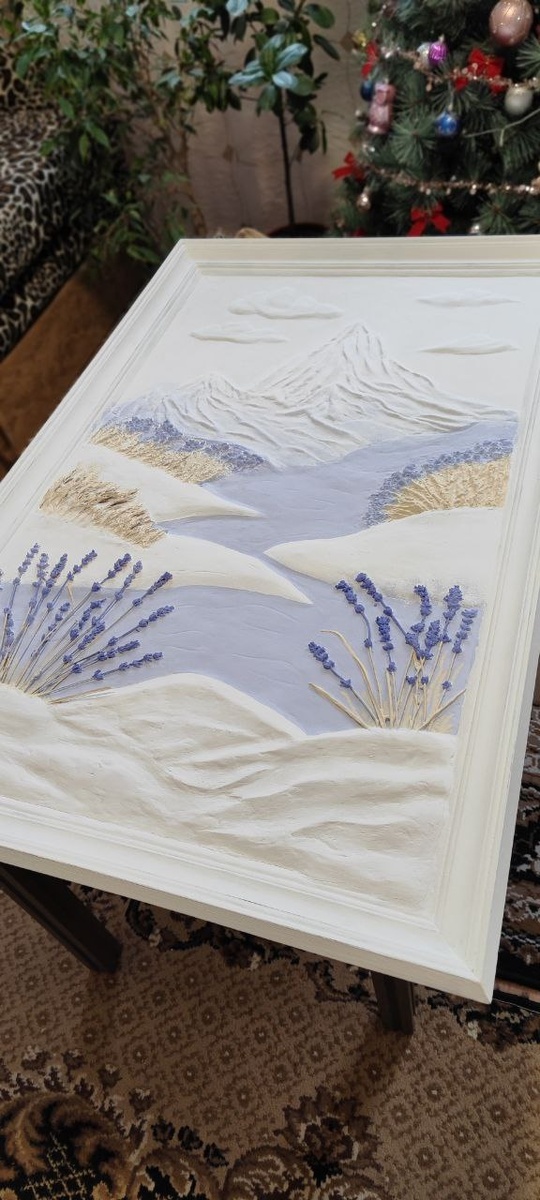 ) Весь декабрь жаловалась мне, что нет вдохновения и делать ничего не хочется. Прихожу к ней на днях, а у нее картина готова... Это коротко о том, в кого я такая рукодельница 🤍 Очень нежная, воздушная и одухотворяющая работа, я в восторге... Ещё и аромат от нее свежей лаванды... Безумно захотелось в горы и в Крым!!! 💜