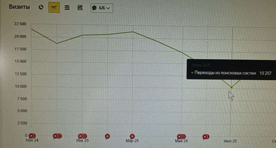 За 3 месяца мы вернули сайт почти к пиковым значениям прошлого года.