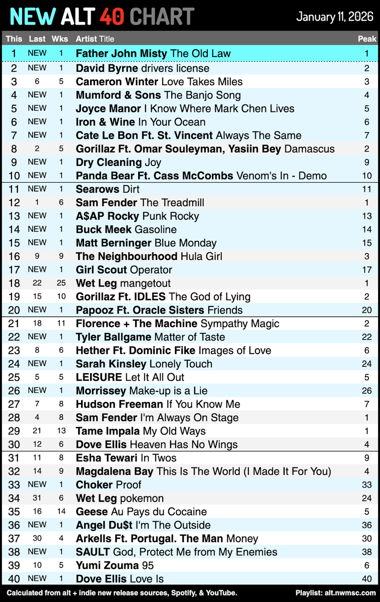 DAVID BYRNE, MUMFORD & SONS и JOYCE MANOR также дебютируют в первой пятерке.