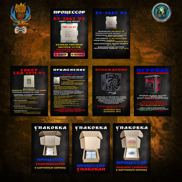 Карточка товара для маркетплейса - Процессор Intel Xeon E5-2667 v4 ➖ Исходник PSD файл для Photoshop ➖ Исходник PSB файл для Photoshop ➖ Шрифт TTF | Ruslan Display ➖ TXT | Описание карточки товара ➖ PNG | Готовые картинки карточки товара ➖ JPG | Фото для создания карточки товара ➖ MP4 | Видео для создания карточки товара Подпишись и покупай