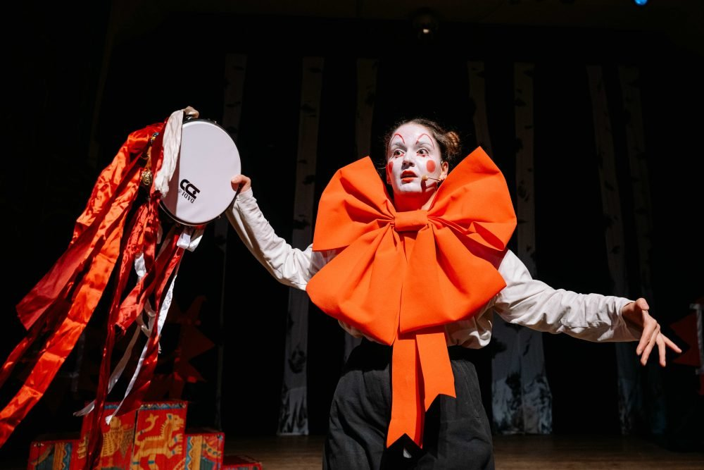 Мыла, белила, сама говорила. Здравствуйте, коллеги-театралы. Сходили мы с дочкой в театр "Русская песня" на спектакль "Сказки скомороха", и по этому поводу хочется сказать несколько слов. Спектакль разбит условно на три части — три сказки. Первая — "Журавль и цапля", вторая — "Мужик и медведь", третья — "Баба и лиса". Русские народные, мудрые и глубокие. Так что было очень интересно, как именно будут преподноситься сюжеты. Авторы спектакля взяли, что называется, с места в карьер. Они быстро раздали всем сидящем в первых двух рядах деревянные ложки и трещотки и назначили их оркестром. К слову, интерактив со зрителями был на протяжении всего спектакля. То дети выступали музыкантами, то отвечали на вопросы скомороха, то плясали, то играли в снежки. Словом, скучно не было. Про взрослых, кстати, создатели тоже не забывали (за что им честь и хвала!). Бóльшую часть спектакл
