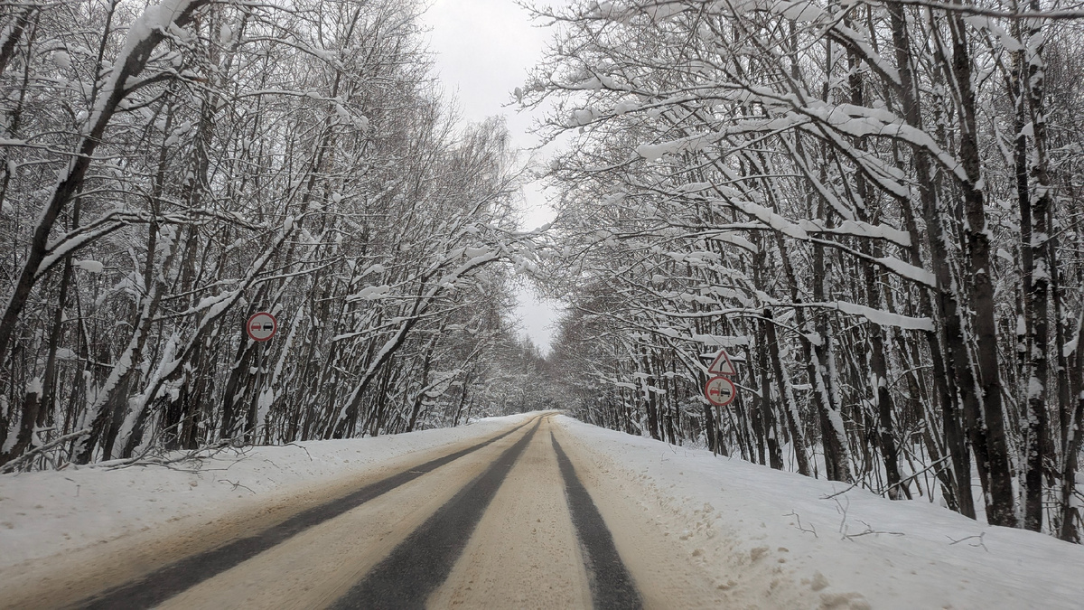 Трасса почищена, а как съехали на местную дорогу, то совсем другая картина. Дорога вся в снегу, ехали аккуратно.