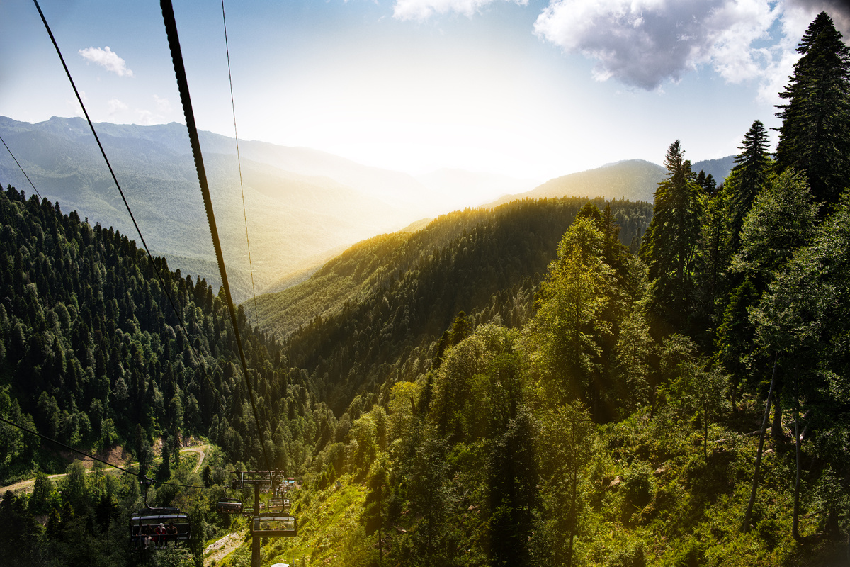 После подъема на Роза Пик 2329 метров есть отдельная ветка фуникулера под названием «Эдельвейс», которая ведет к парку водопадов Менделиха. Канатная дорога спускается вниз, открывая красивейшие виды на леса и горы. Время спуска в парк около пятнадцати минут.