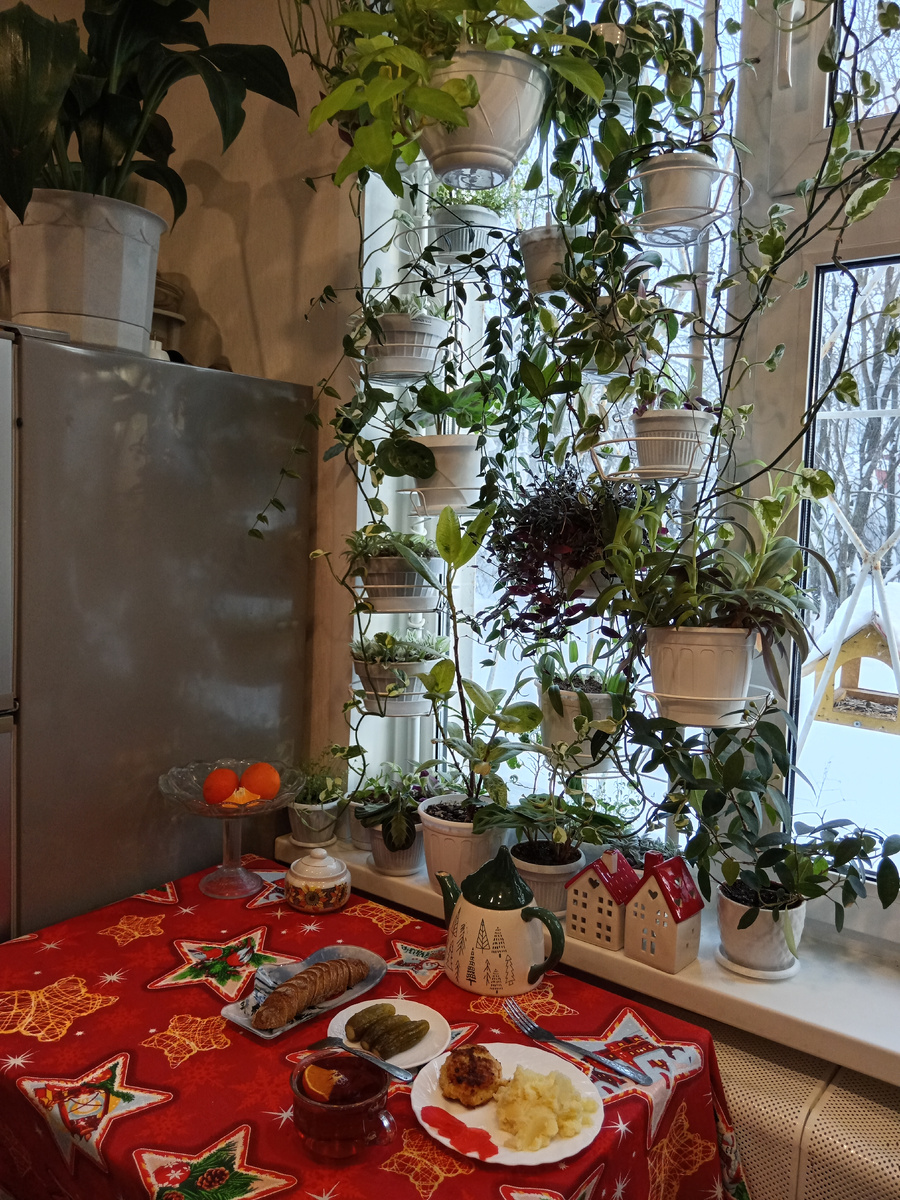 Сын попозже встал. Когда я была сытая и довольная полётом снегирей.