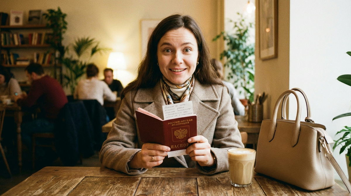 Я сидела ещё несколько минут, допивая остывший латте. Потом открыла паспорт – просто так, проверить ещё раз. И увидела записку.