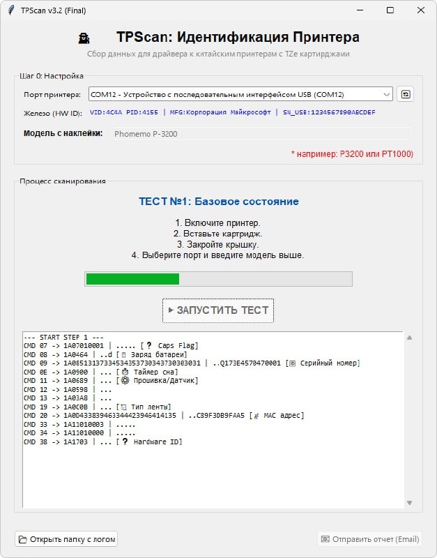 Печать у этих устройств закрыта софтом, драйверов нет, но по факту многие принтеры спокойно висят на COM-порту и общаются вполне себе обычными командами. Палка, палка, огуречик — вот это всё. P-3200, как выяснилось, не исключение. Есть стойкое ощущение, что большая часть дешёвых принтеров сделана по одному лекалу: меняется корпус, логотип и мобильное приложение, а протокол остаётся плюс-минус тем же. Сканер позволяет прогнать устройство, снять лог обмена и понять, на какие команды оно отвечает. А это уже прямой путь к написанию универсального драйвера. Все принтеры подряд скупать возможности нет, поэтому остаётся надеяться на принтероводов. Если у вас есть подобная машинка — скачайте сканер, запустите тест и пришлите лог: https://npekpacho.ru/downloads/TPScan.exe #elekt_riki #tpp