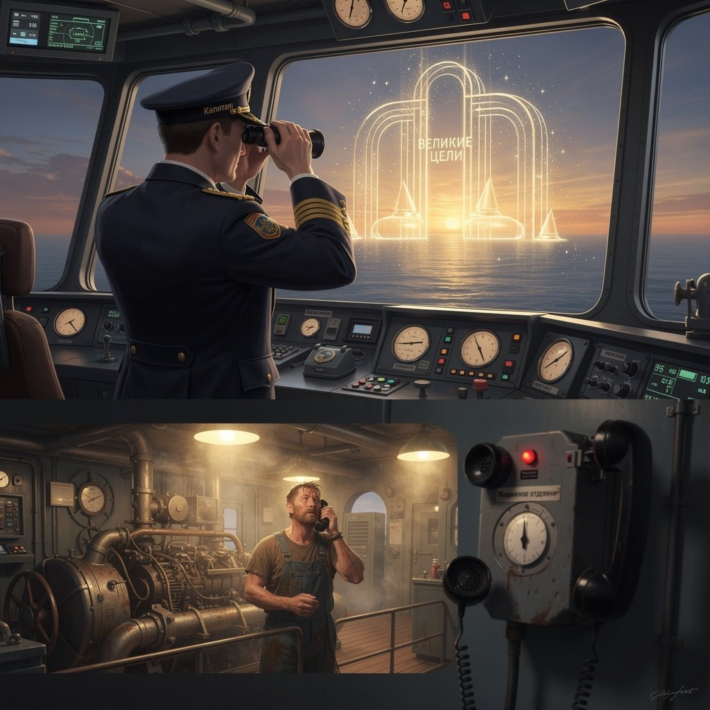 (Сцена: Вы – Капитан в парадном кителе, смотрите в бинокль на горизонт, где сияют Великие Цели. Снизу, из машинного отделения, звонит Механик – ваше Тело). Механик (голос хриплый): Кэп, у нас проблемы. Давление в котлах зашкаливает. Обшивка трещит по швам. Шею заклинило, в желудке пожар. Топливо на нуле. Нужно сбавить ход и зайти в док на ремонт. Капитан (Не отрываясь от бинокля, раздраженно): Отставить панику! Видишь ту вершину? Нам туда. Некогда останавливаться. У нас график! У нас амбиции! Закиньте еще угля (кофе, сладкого) и полный вперед! Механик: Угля больше нет, Кэп! Мы сжигаем резервы, жжем обшивку. Если не остановимся, лопнет главный клапан. Капитан: Ты вечно ноешь! Посмотри на другие корабли – вон как несутся! А ты? Слабак. Я приказываю: игнорировать красные лампочки. Мы должны быть продуктивными! Я здесь главный! (Звук лопнувшей трубы, вой сирены, свет гаснет. Корабль встает посреди океана. Тишина). Капитан (В темноте, растерянно): Эй? Почему мы стоим? Я же не разрешал! Вклю