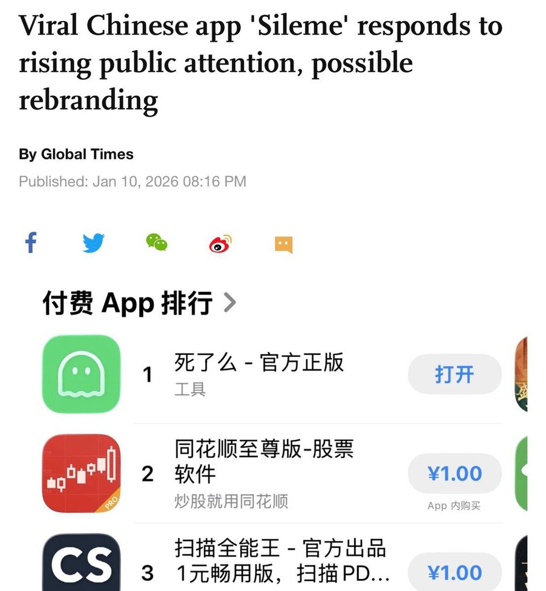 В Китае вирусится приложение Sileme («Ты мертв?»), предназначенное для одиноких людей. Пользователи должны ежедневно отмечаться в системе. Если пользователь не отмечается несколько дней подряд, приложение автоматически уведомляет экстренные контакты. В соцсетях критикуют название Sileme и требуют переименовать сервис в Hupzheme («Ты жив?»). Приложение вызвало широкий общественный резонанс из-за названия. https://dzen.ru/id/5c0e38ff46ef5c00aaa80527
