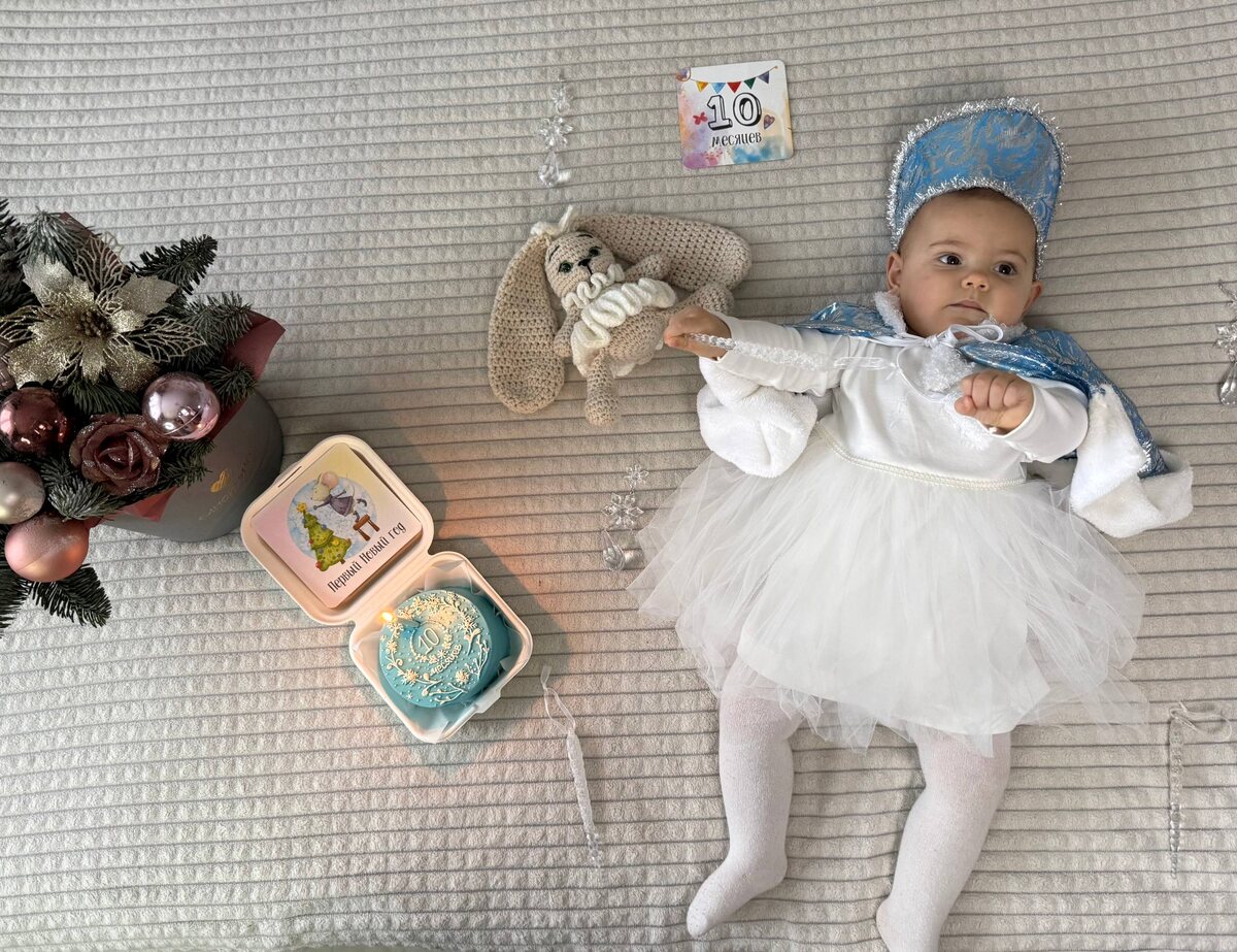 Звучит солидно, но это был один из самых сложных месяцев. За это время у меня вылезло сразу четыре верхних зуба. Это было шоково, больно и очень выматывающе - для меня и для всех вокруг. Ни нормального сна, ни покушать, ни поиграть, ничего не хотелось. Ещё и все болели. Иногда казалось, что мы не вывезем этот месяц, но как-то всё равно вывезли. Иногда просто на руках, иногда по очереди спали. С природой, как оказалось, не поспоришь. 🎄Я встретила свой первый Новый год в кроватке, во сне. А перед этим сидела за праздничным ужином и внимательно наблюдала, как взрослые едят что-то очень вкусное и красивое. Почти весь месяц любовалась ёлкой и огоньками✨ по всему дому. Кстати, ёлку я не уронила. Даже не пыталась. Так, пару игрушек стянула, чтобы рассмотреть поближе - и всё. 🎅🏼Дед Мороз принёс мне и сестричкам подарки. Мне достался мягкий конструктор и деревянная радуга с человечками. Я одобрила. А ещё теперь я осознанно говорю «мама» и «папа». Везде стою и всё чаще пробую отпускать