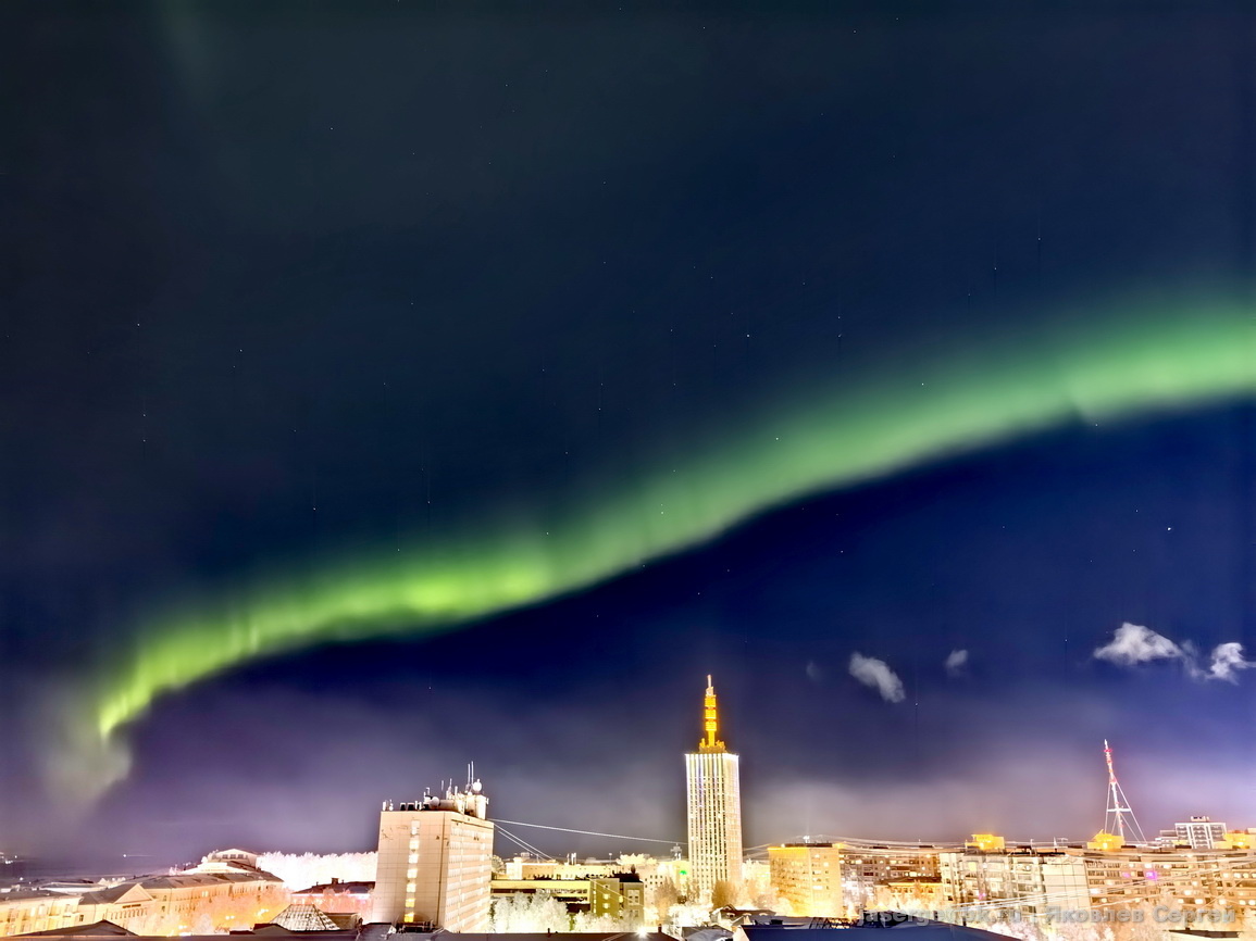 Первое яркое северное сияние в Архангельске. 11 января 2026 года