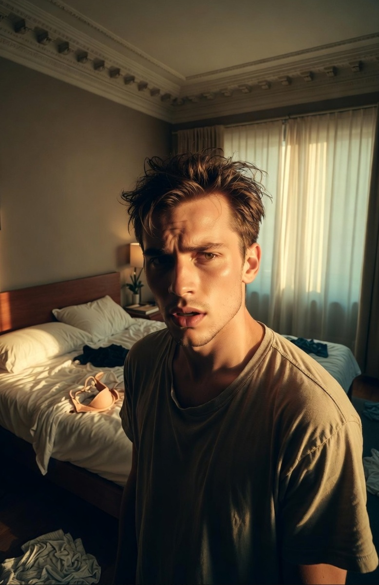 Он осторожно, как вор, сполз с кровати. Ноги нащупали холодный паркет. Одежда была разбросана по всей гостиной, словно после обыска. Ботинки стояли у двери, как два пьяных часовых. Галстук висел на ручке холодильника — видимо, туда его закинули, когда искали воду в три часа ночи.