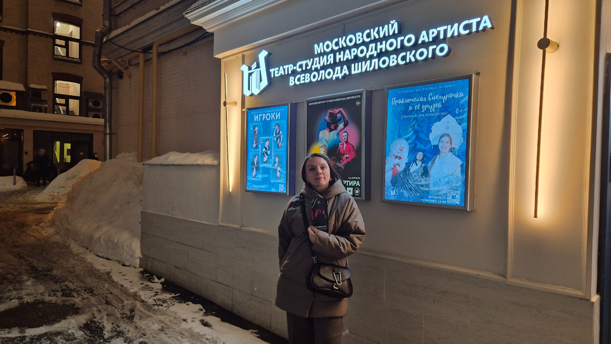 Если говорить о театре-студии Шиловского, то это, пожалуй, один из самых маленьких театров, в котором мне приходилось бывать. Находится он в подвале дома на Петровке, такое укромное местечко во дворах. Фойе небольшое, один массивный бархатный диван, буфет. Много фотографий народного артиста Всеволода Шиловского на стенах, почетные грамоты и фото артистов.