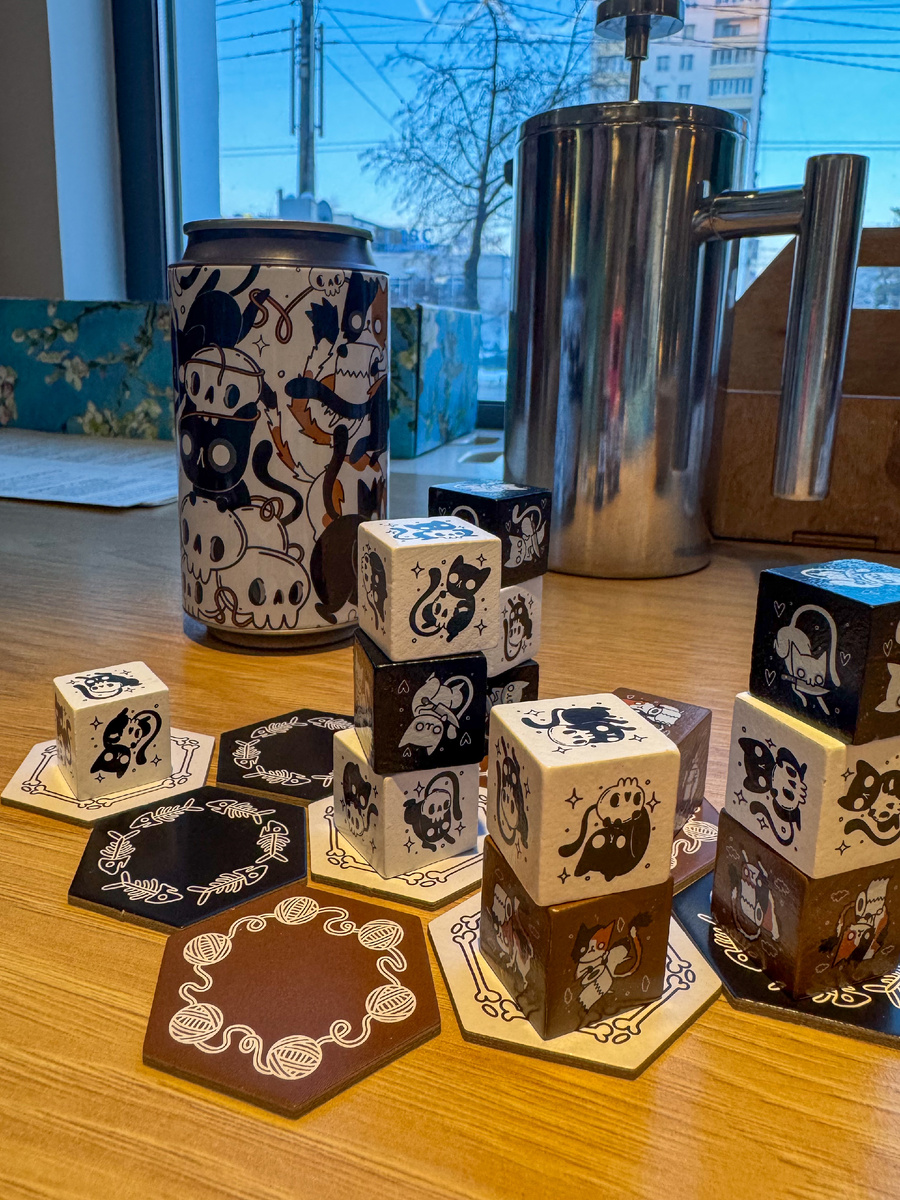 Идея «Котокомбо» кажется крайне простой, оттого чудится, что где-то ты такое уже видел — но я не могу никак вспомнить настолку, которая использует подобный принцип, и это для меня добавляет игре баллов.