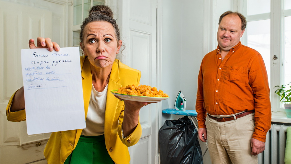 — Вадим, утюг в шкафу, доска за дверью. Погладь сам, я работаю!